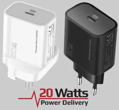 20W Power Delivery USB-C Wall Charger • Fast Charging Power Delivery for iPhone 8 and up • Surge Protection • Automatic Voltage Regulation