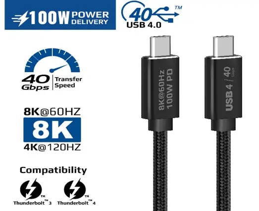 40Gbps SuperSpeed USB4™ Cable • 100W Charging Power • 40Gbps Data Transfer Speed • 8K@60Hz Video Support • 1Meter Length • Duarable Fabric Cable