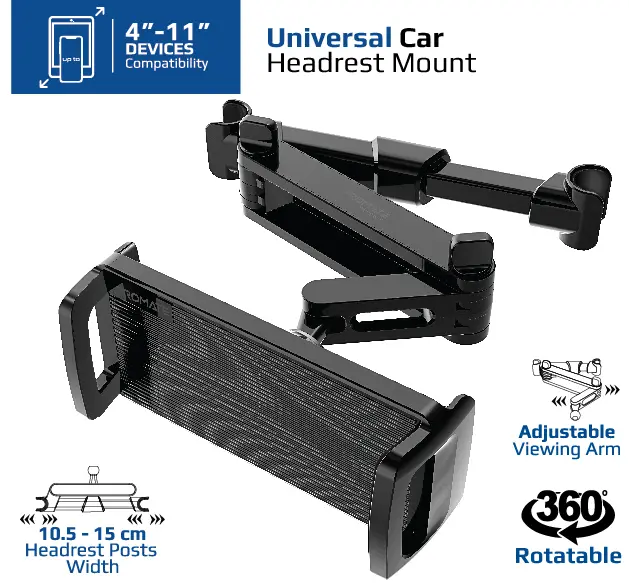 Secure Mounting Smartphone Car Mount • For 4"-11" Devices • Multi-Angle Rotation • Multi-Positioning Arm • Robust Aluminium Structure