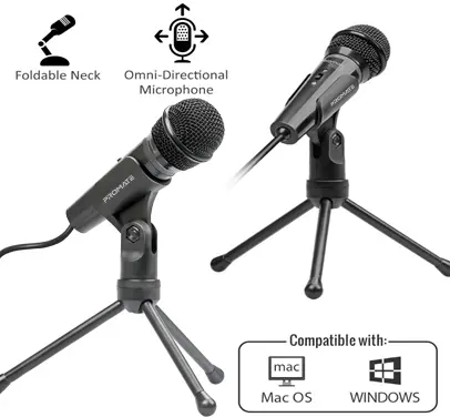 Universal Digital Dynamic Vocal Microphone with HD Quality Audio Recording • Foldable Tripod Stand • 3.5mm AUX Connectivity