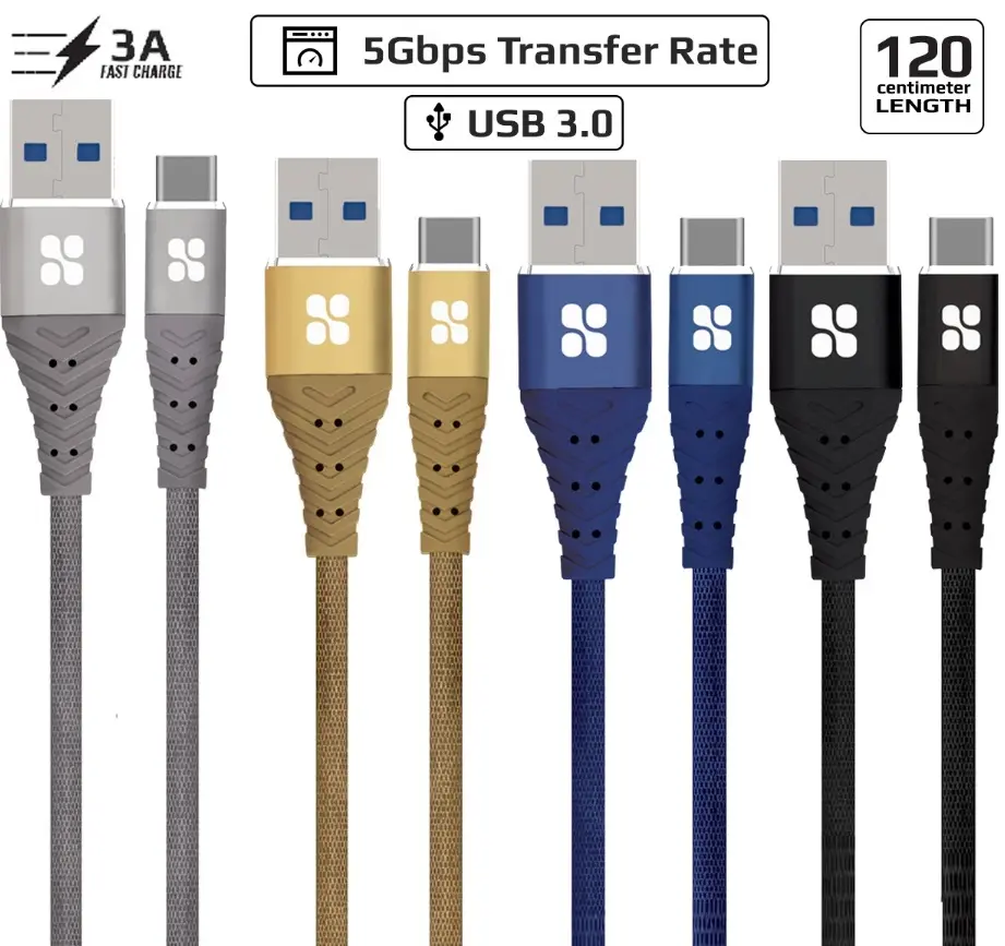 High Speed Data Sync and Charge USB-C Cable to USB-A • 3A Charging Support • 1.2meter Cable Length • 10,000+ Bend Lifespan