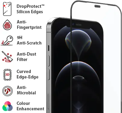 DropProtect™ Clear 3D Glass with Built-in Bumper • Superior Clarity • 9H Hardness • Colour Enhancement • Anti-Dust Filter • Edge to Edge Protection CRYSTAL-I14PRO