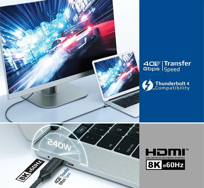 40Gbps SuperSpeed USB4™ Cable • 240W Charging Power • 40Gbps Data Transfer Speed • 8K@60Hz Video Support • 2Meter Length • Duarable Fabric Cable