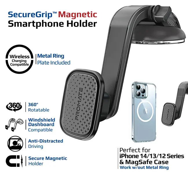 360⁰ Cradleless Magnetic Car Mount for Smartphones • Secure Anti-Slip Mount • For Dashboard & Windshield • Metal Ring & Rectangular Plate included